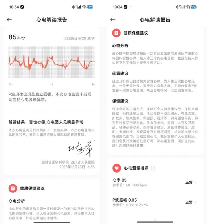 健康监测方面,XiaomiWatch5同样表现专业。搭载4灯4PD心率模组,支持ECG专业心电分析,通过二类医疗器械认证。将手指按在触控按键上30秒,即可生成详细心电图,支持专业医疗机构在线分析,能及时预警房颤等心脏异常风险。
