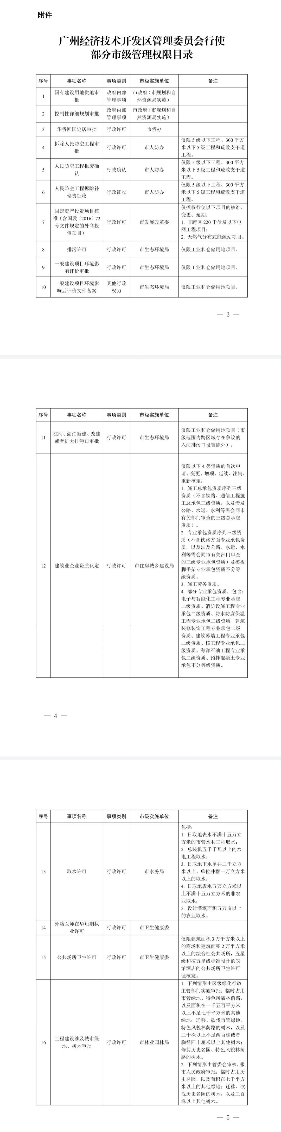 广州经济技术开发区管理委员会行使部分市级管理权限目录