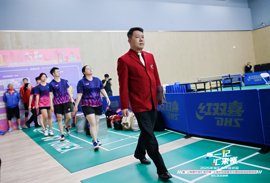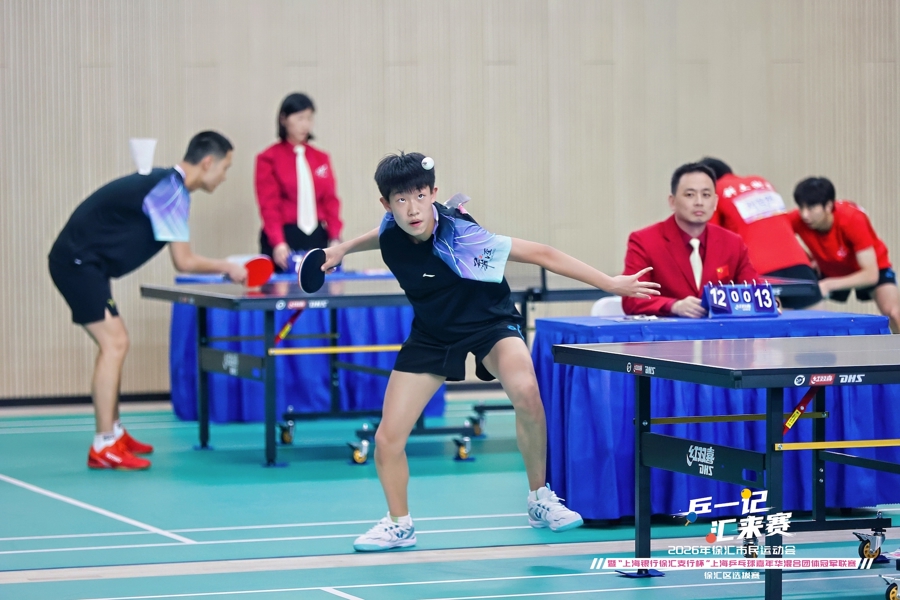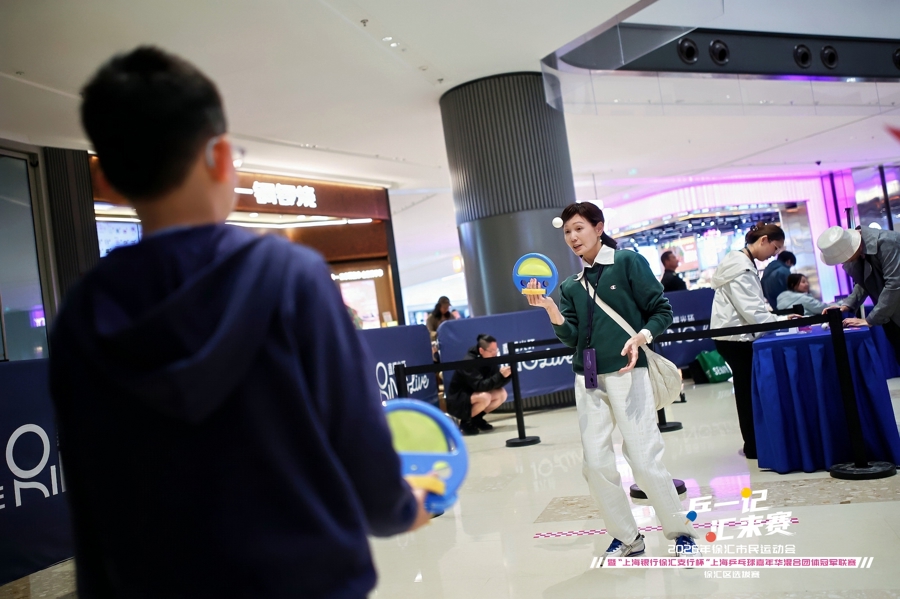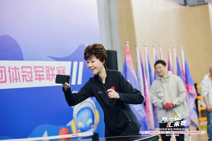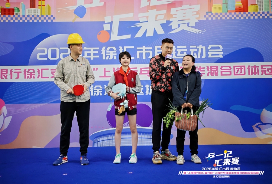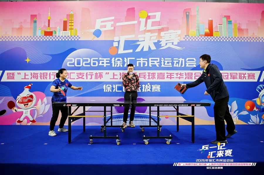提着菜篮子的阿姨、背着书包的学生、戴着安全帽的工程师,他们出现在同一个舞台,向乒乓球世界冠军发起挑战。4月25日,2026年徐汇市民运动会开幕式暨“上海银行徐汇支行杯”上海乒乓球嘉年华混合团体冠军联赛徐汇区选拔赛,在鑫耀光环Live二期火热开拍。