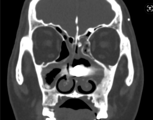CT检查印证了推断:左侧鼻腔内果然有一高密度异物!